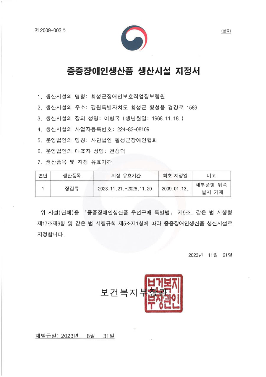 • Àå¾ÖÀκ¹Áö½Ã¼³ ½Å°íÁõ